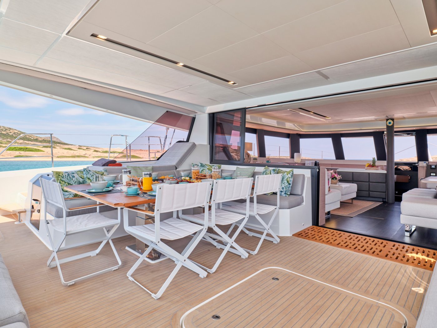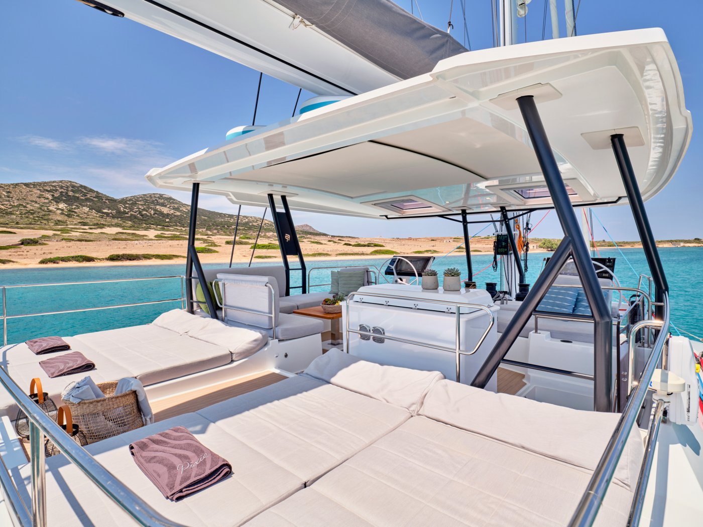 S/Y PIXIE is a Fountaine Pajot Alegria 67, she is a remarkably beautiful and comfortable sailing catamaran designed by Berret Racoupeau Yachts Design for the most discerning sailors. Its incredibly spacious flybridge provides unrivaled comfort, and its bow cockpit, which features a separate Jacuzzi zone, symbolizes a lifestyle worthy of the best.