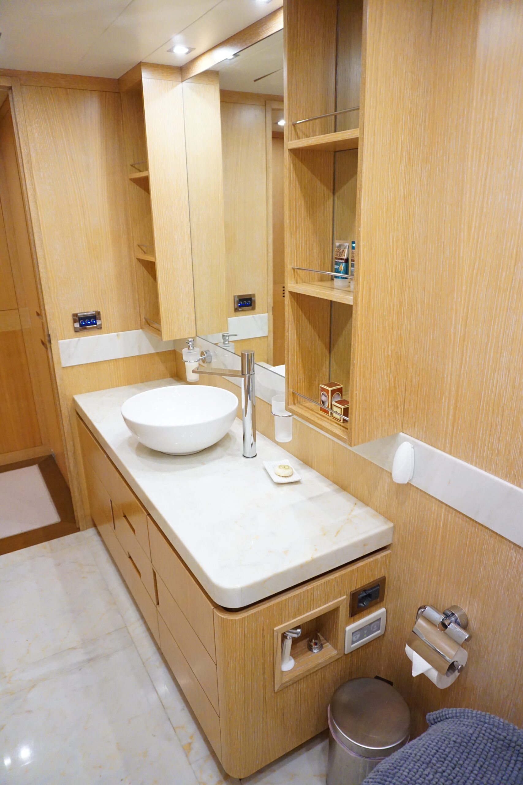 The Master cabin is located midship, in a separate area with its own stairs, offering to guests a very private space.