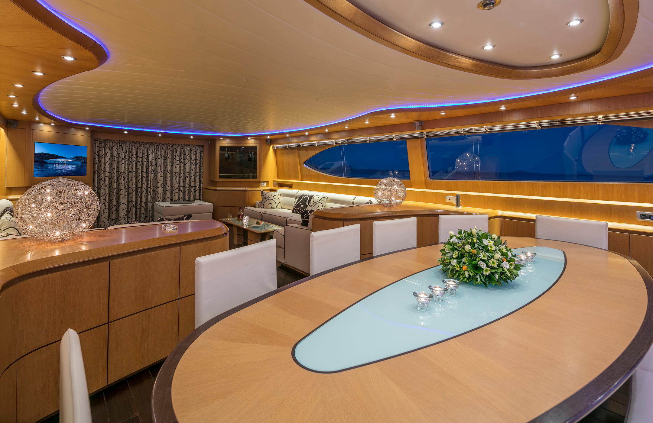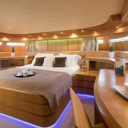 Paris A is a 115’ Maiora and represents a blend of classic elegant lines, latest technology, comfort, and sophistication. The modern interior is designed with impressive lighting systems throughout all areas, creating a cozy and serene atmosphere. Accommodation for up to 12 guests in 5 luxurious staterooms, Paris A also offers spacious areas on the fore, aft and sun deck, allowing guests to make the most of their holiday in the open air. The huge sun deck area with a bar and BBQ is the ideal setting for a moonlight dinner or party, as well as soaking up the sunshine in the day time.