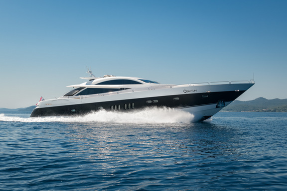 33m QUANTUM is a quantum leap forward for yachts in her class. With her sleek superyacht looks backed up by raw power and performance, this opulent Sunseeker sports yacht is where the party is at during the Adriatic summer. Packing plenty of features normally found on a much larger yacht, such as Jacuzzi, oversize aft deck with bar, and a stateof-the-art audio-visual system, this flagship Predator 108 confidently breaks all the rules.